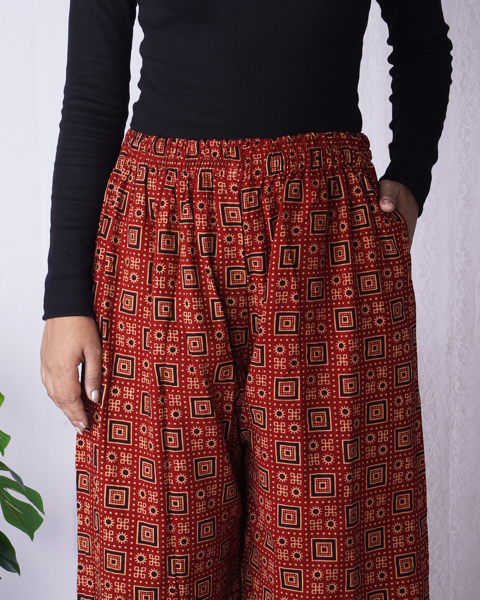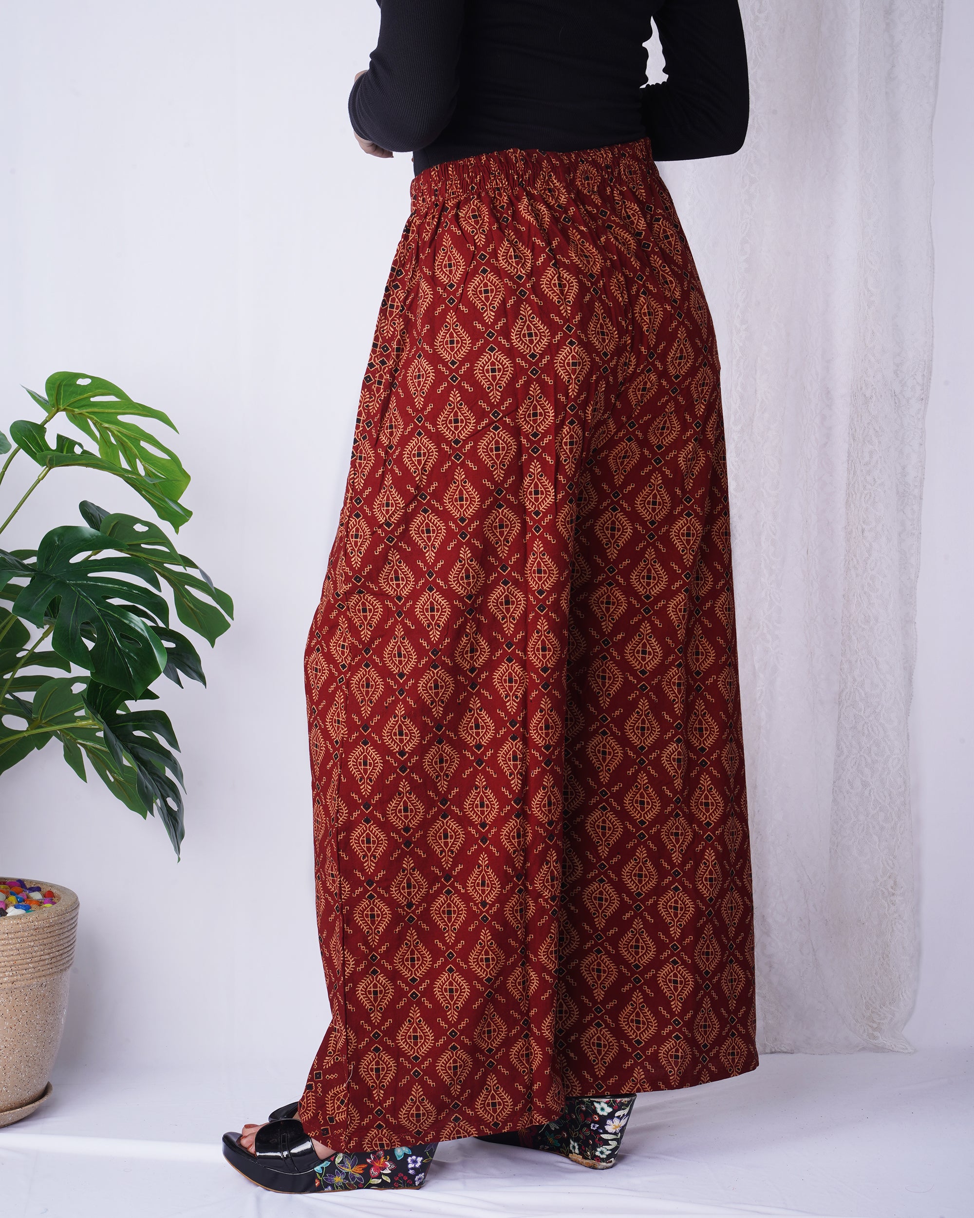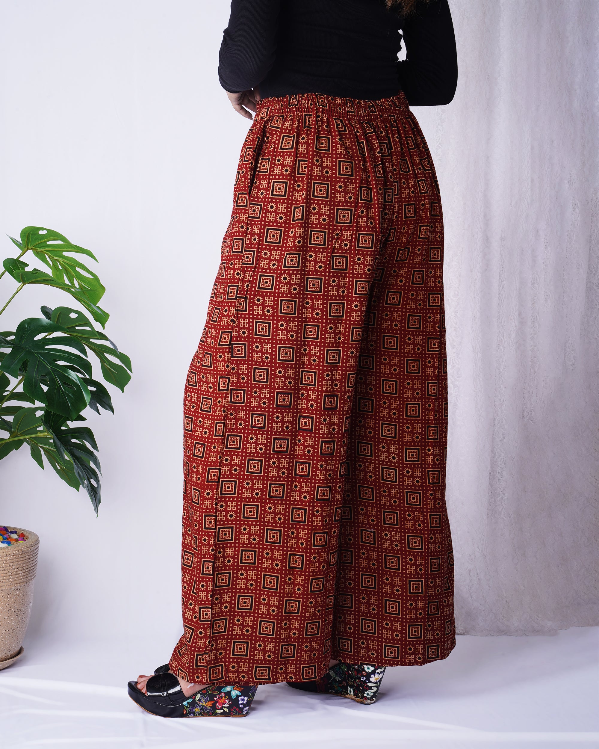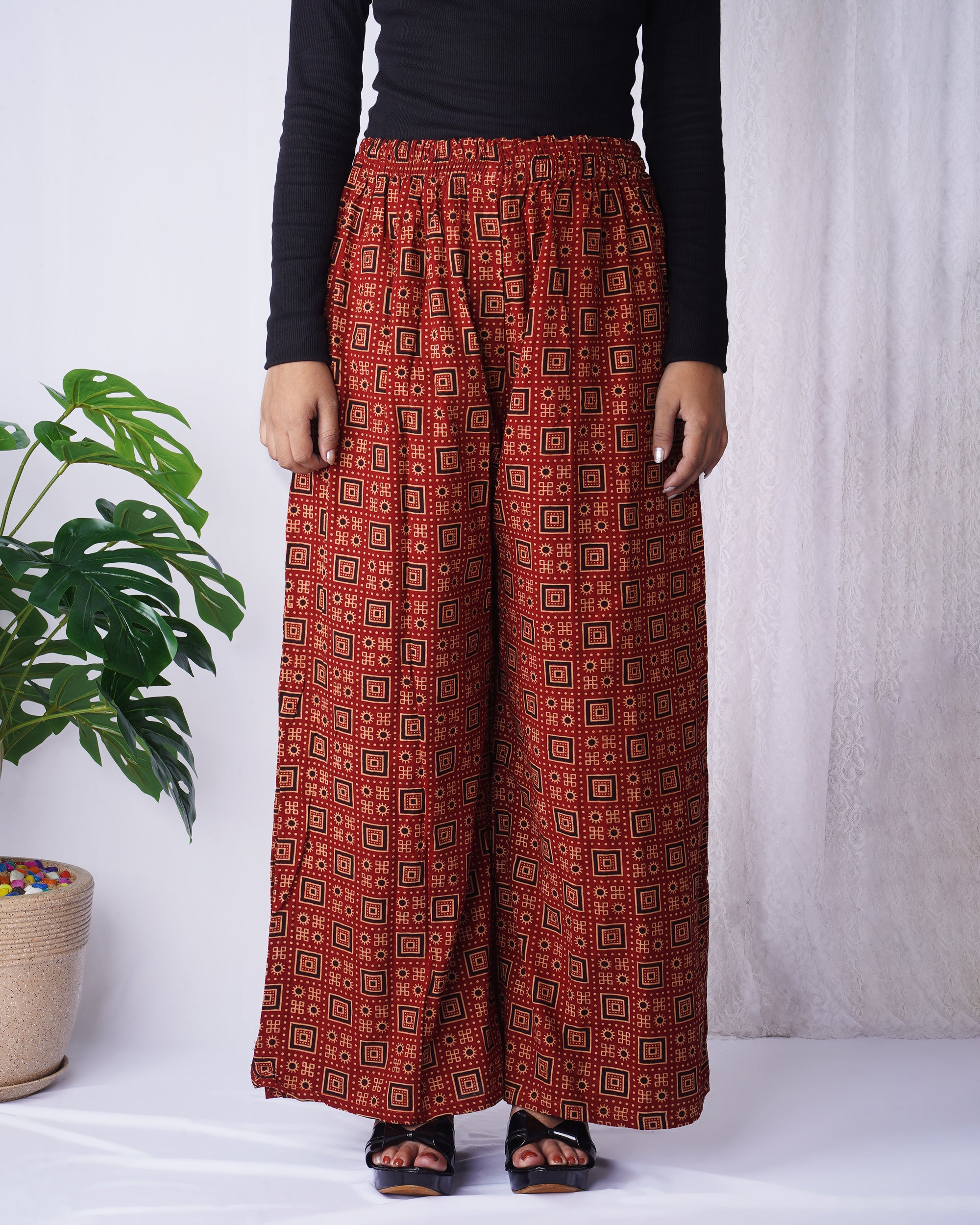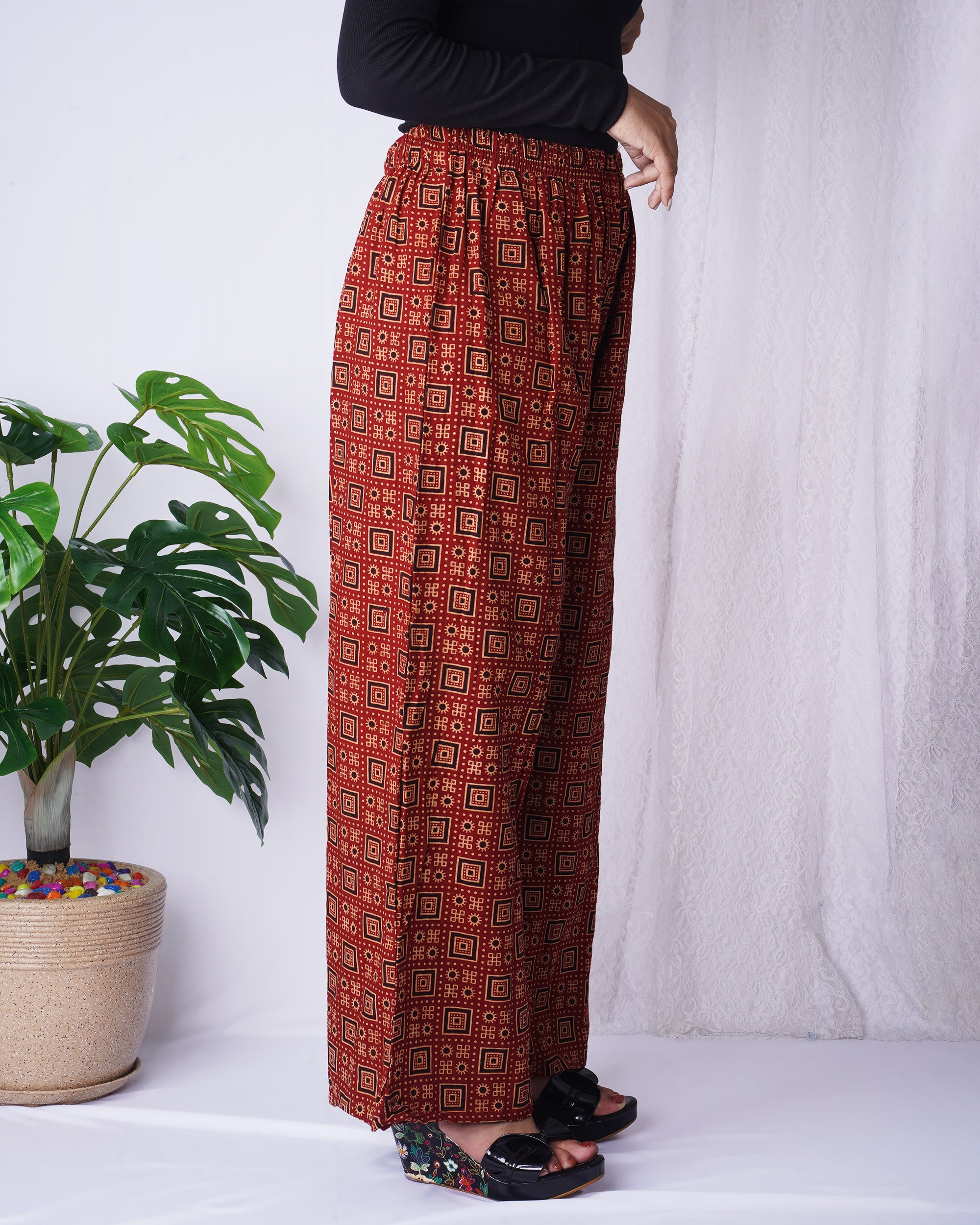 Brighten up your everyday style with these orange leaf print palazzo pants. Crafted from soft, breathable cotton, they feature an...