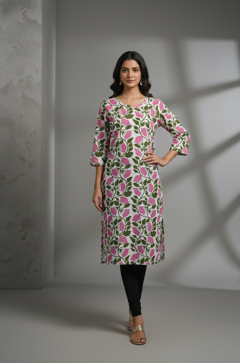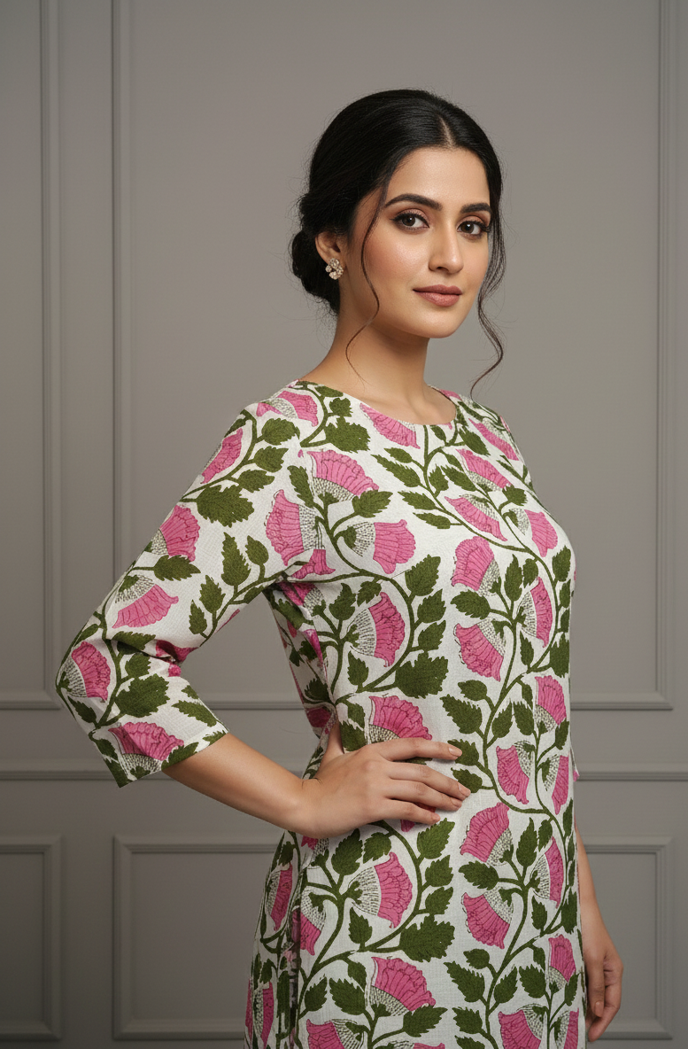 Blush Bloom Cotton Kurti – Soft, Fresh & Effortlessly Feminine