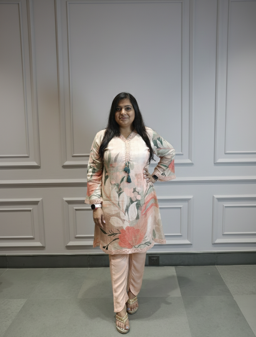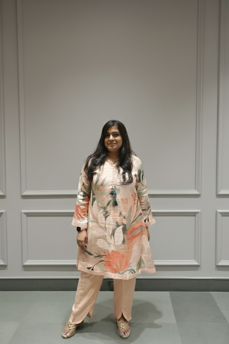 Blush Bloom Peach Silk Kurta Set – A Whisper of Luxury, A Bloom of Grace Delicate as a petal and...