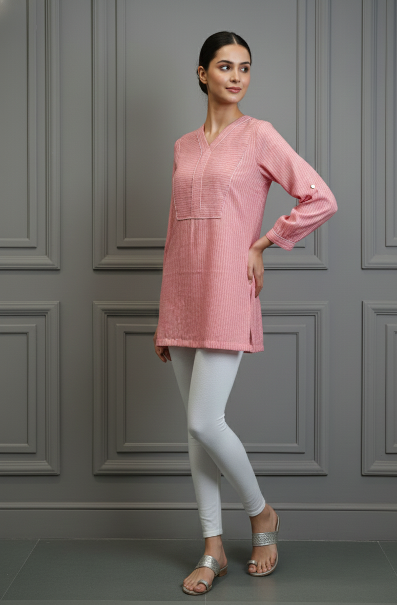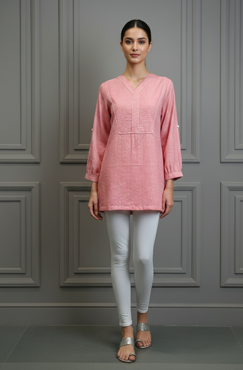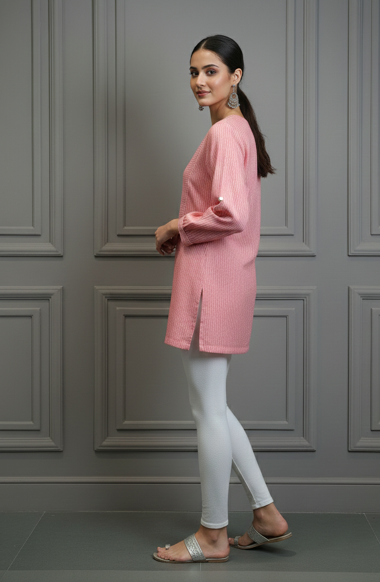 Blush Checkered Cotton Short Top – Pretty, Playful & Ready to Go