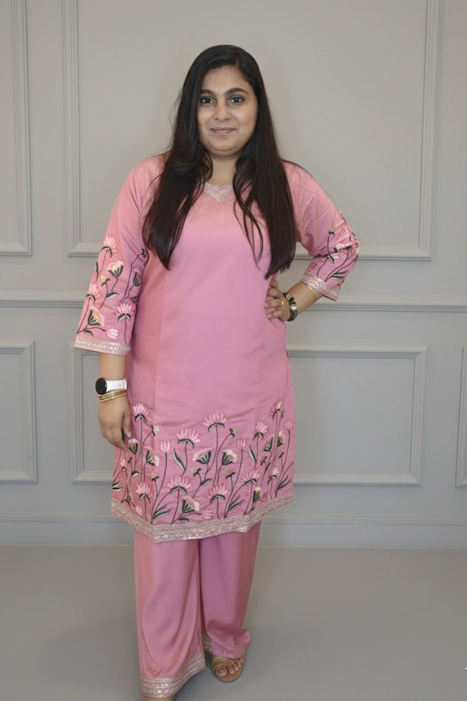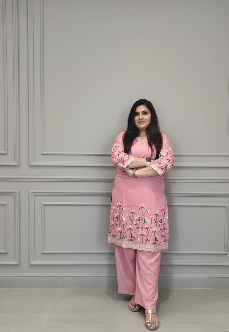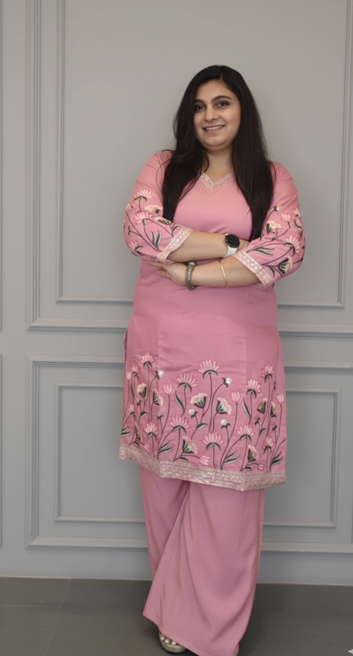 Blush Pink Embroidered Kurta Set – A Feminine Classic with Graceful Detailing