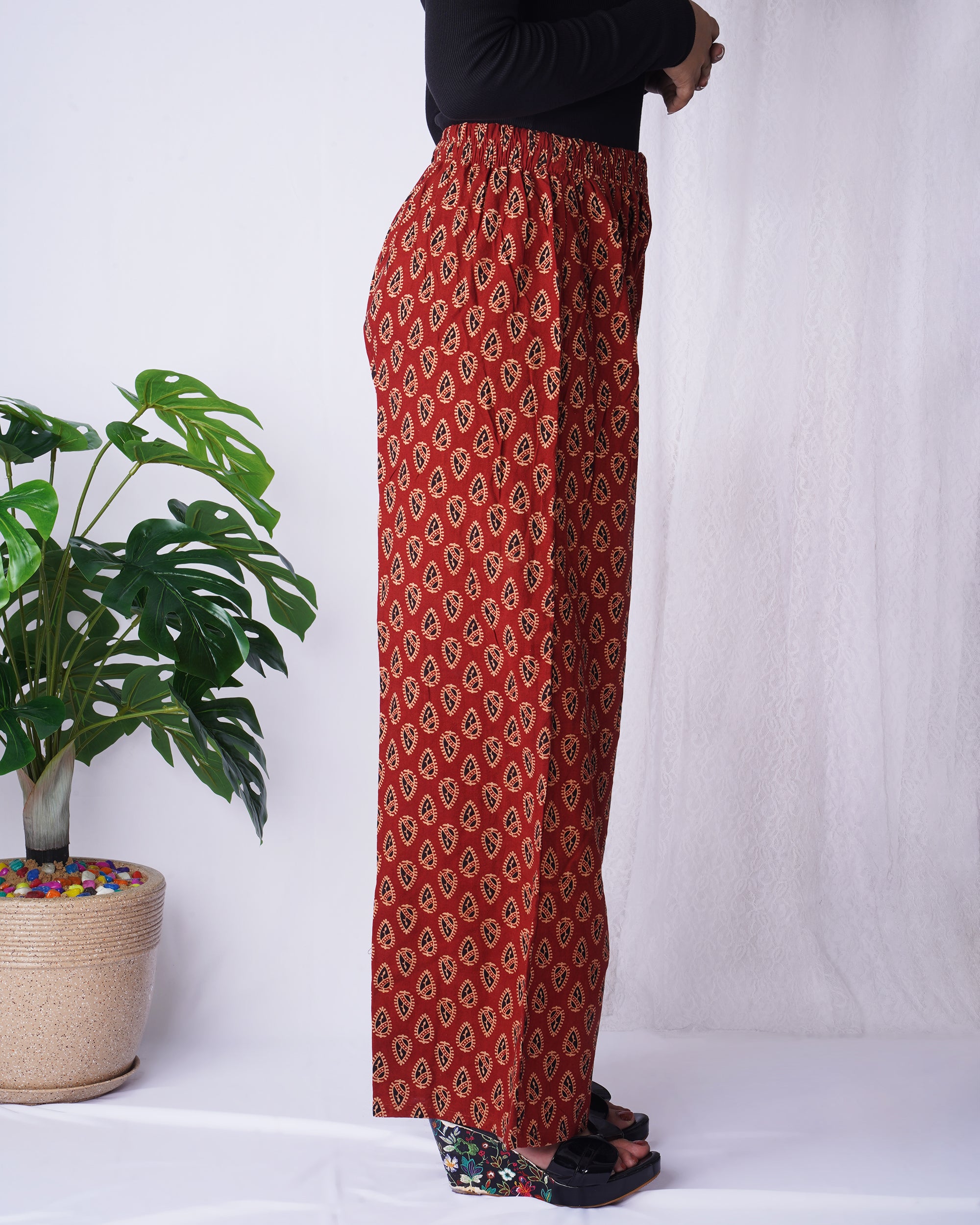 Rust Red Block Print Palazzo Pants