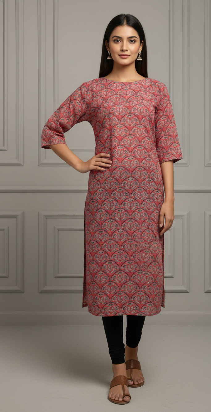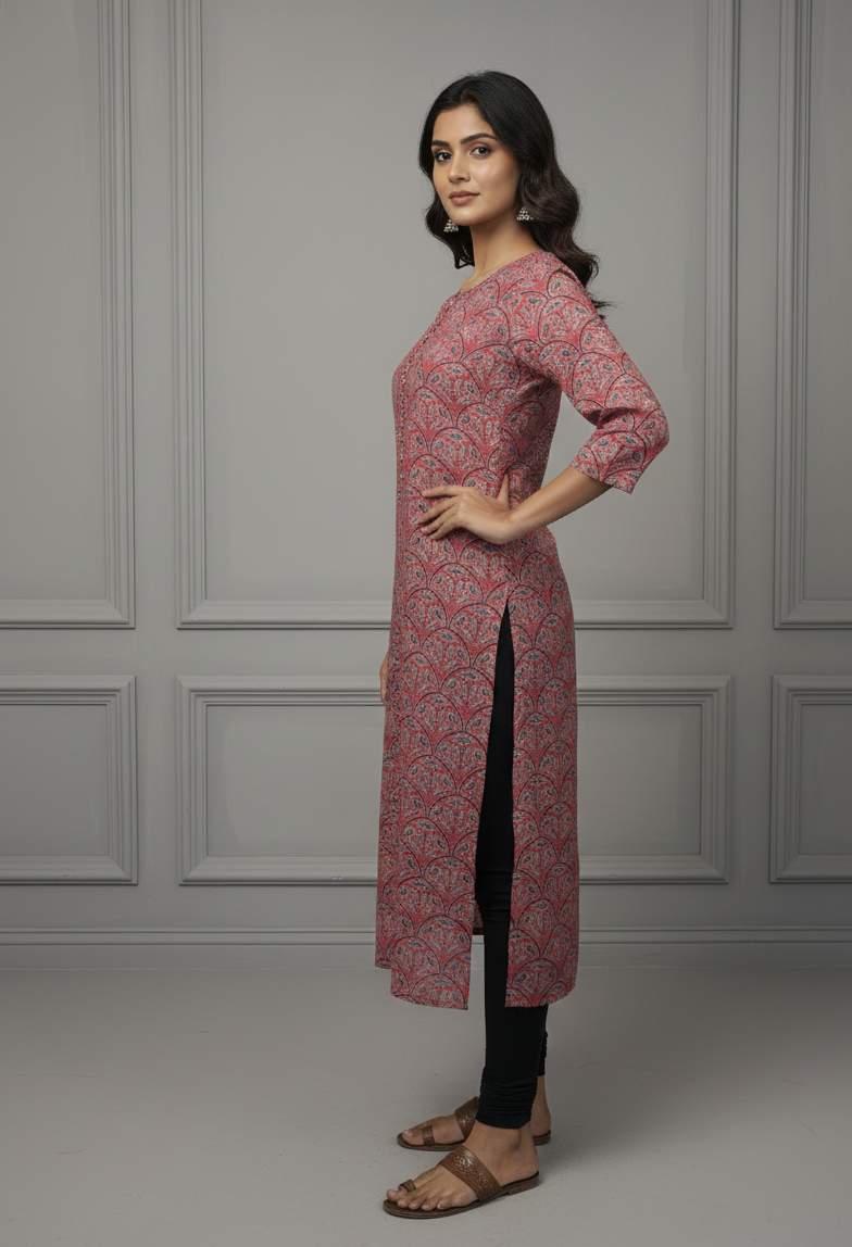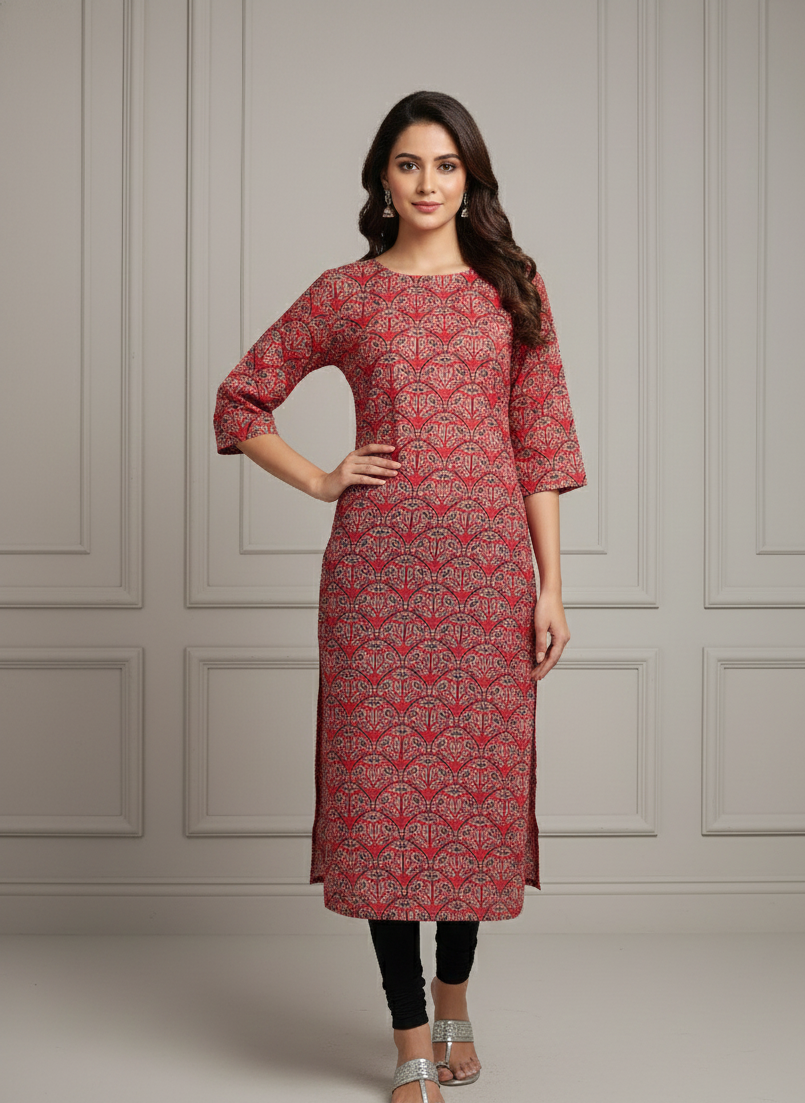 Crimson Bloom Printed Cotton Kurti – Effortless Elegance in Every Thread