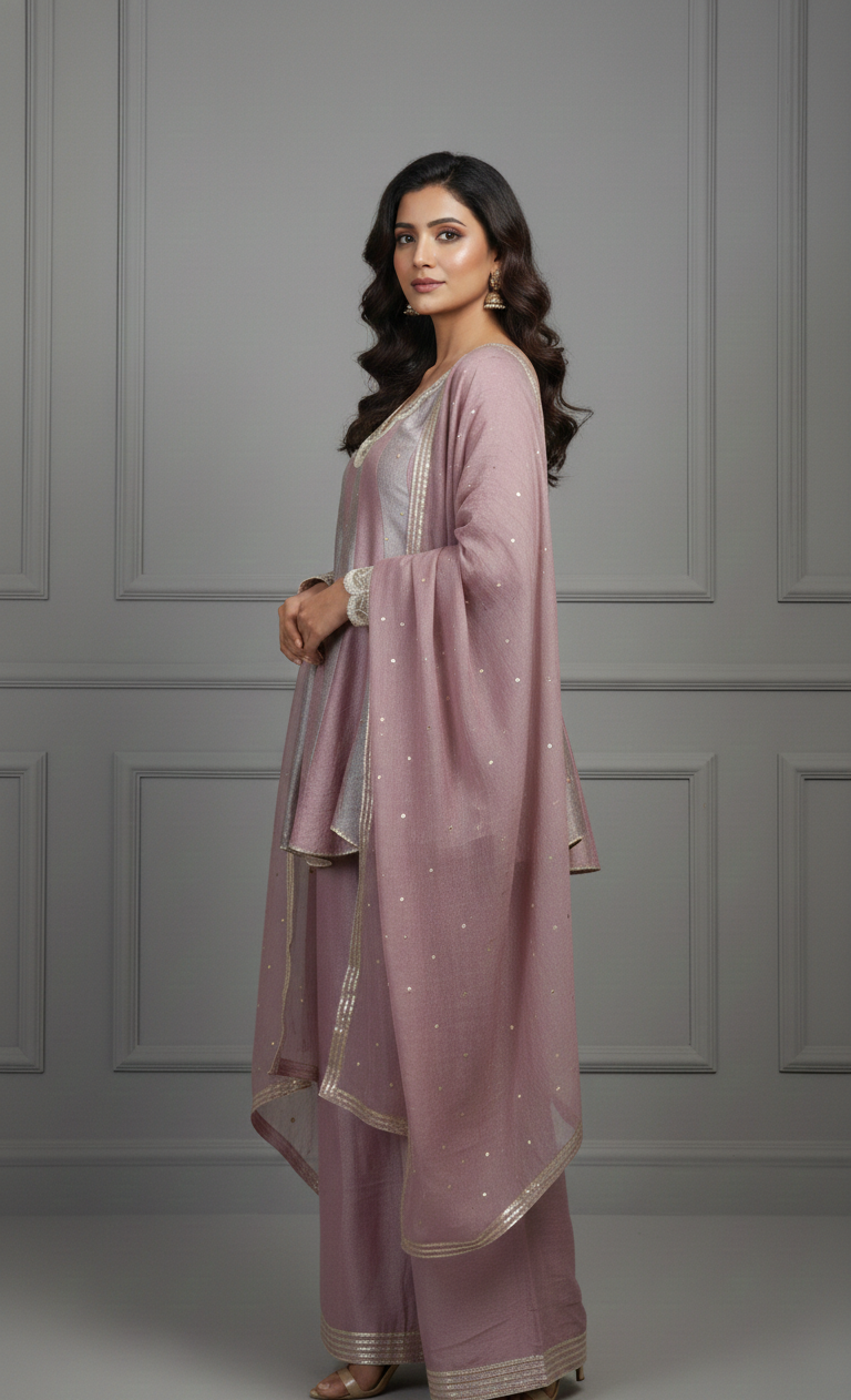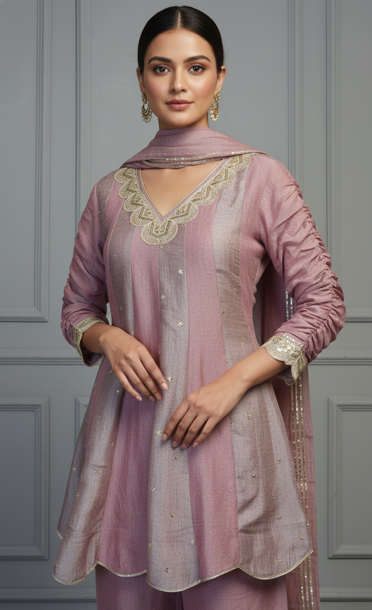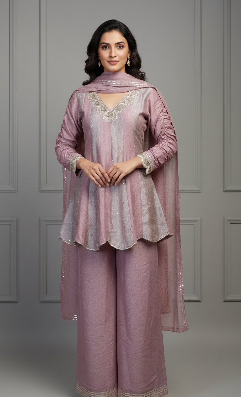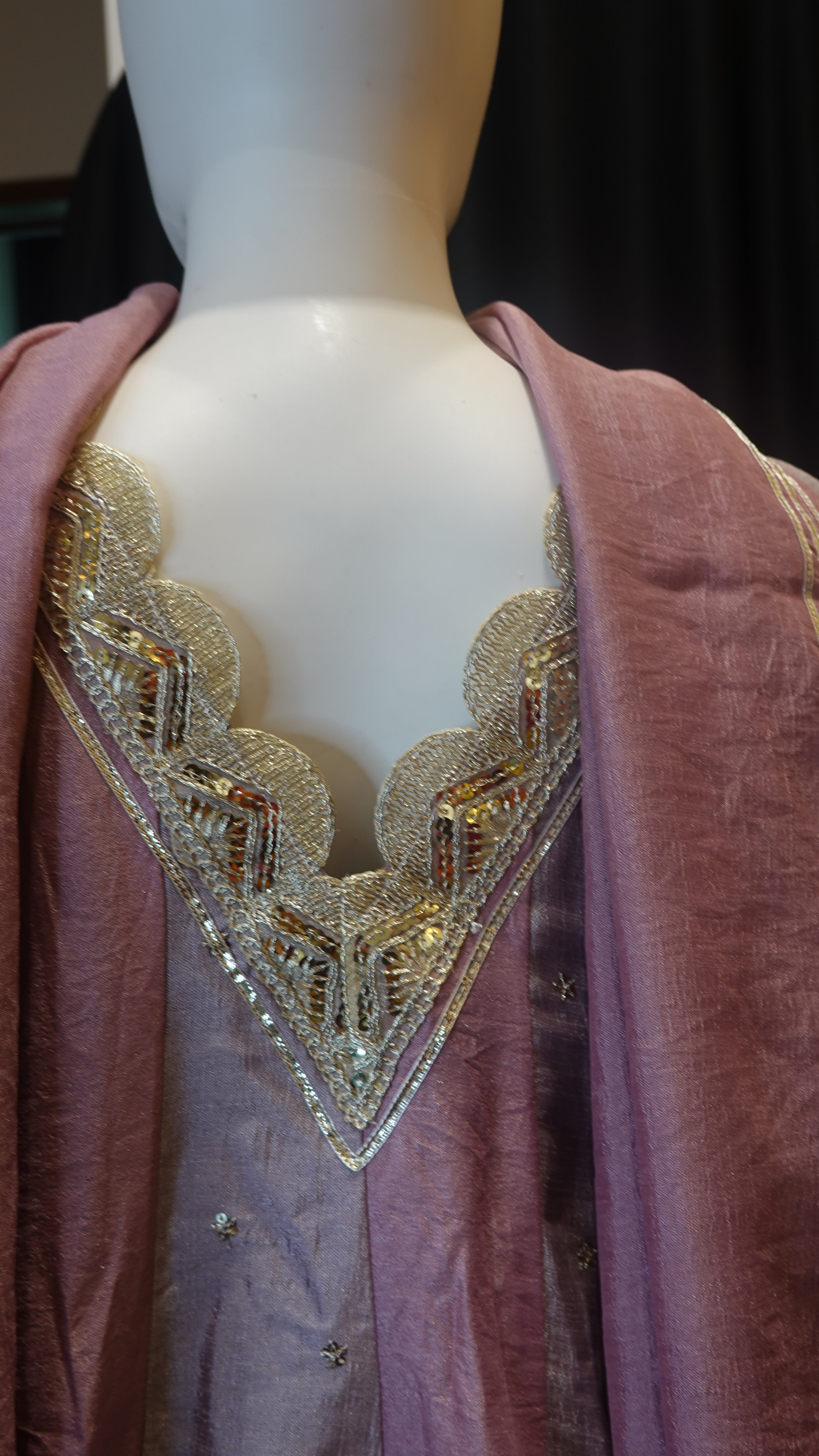 Elegant Mauve Silk Kurta Set with Subtle Embellishments