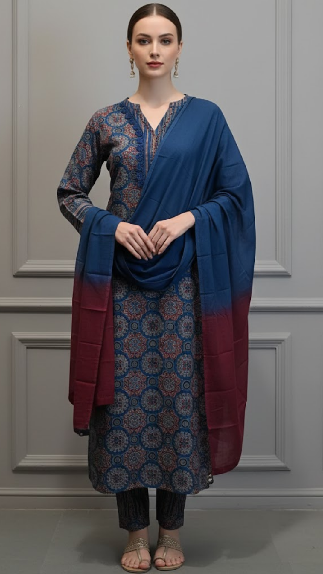 Ethereal Blue Ajrakh Cotton Punjabi Suit – Art in Every Thread, Grace in Every Step Step into heritage with our...