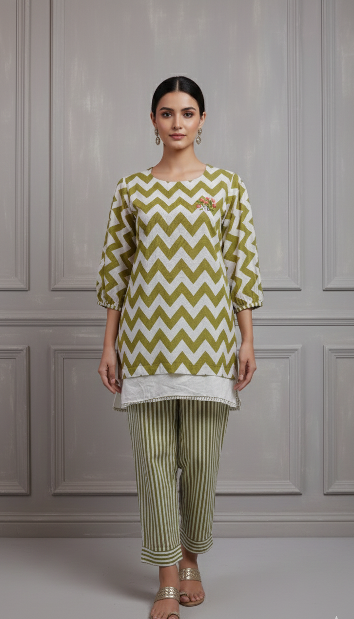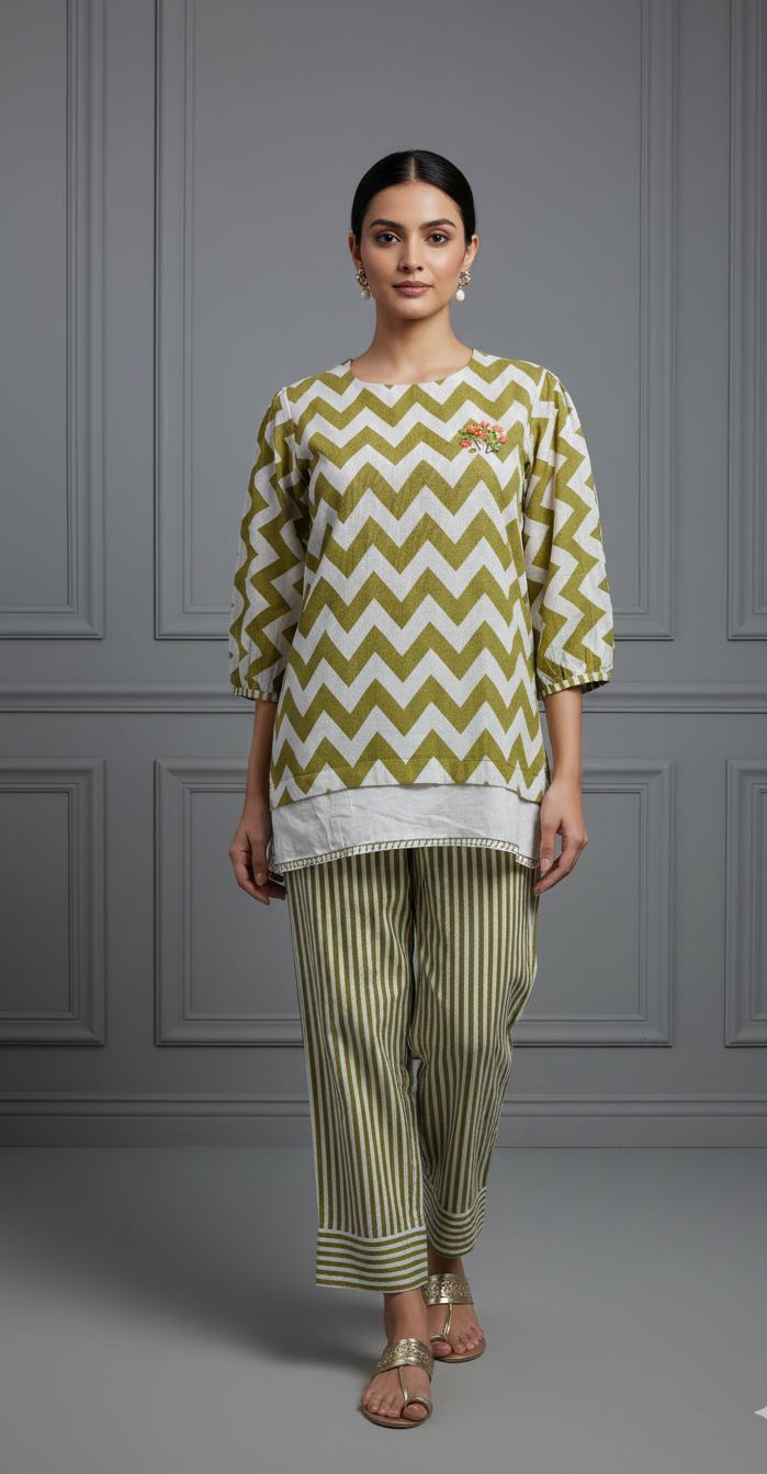 Bring home effortless elegance with this beautiful Green & Cream Co-Ord Set, designed to offer a refreshing blend of subtle...
