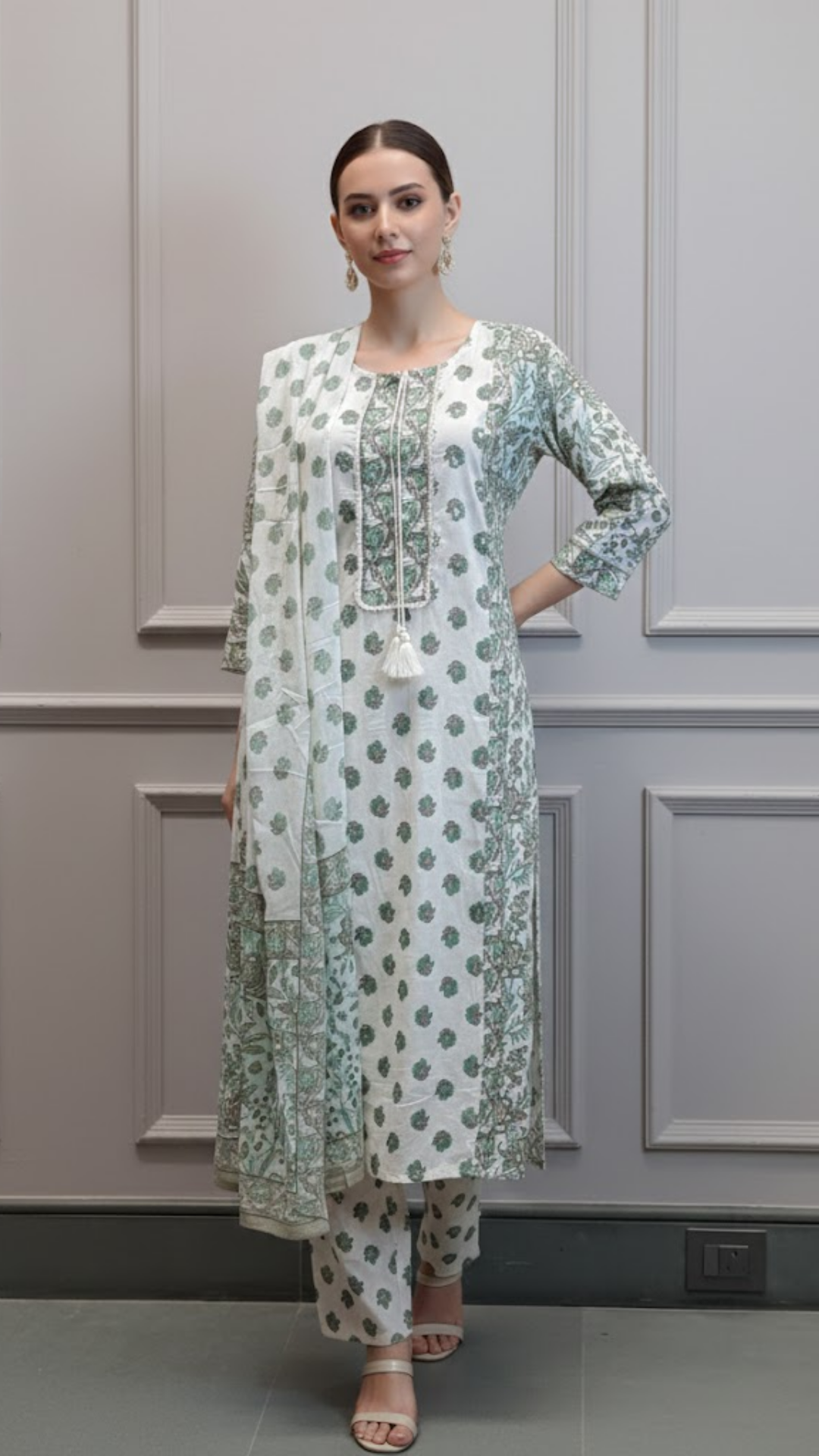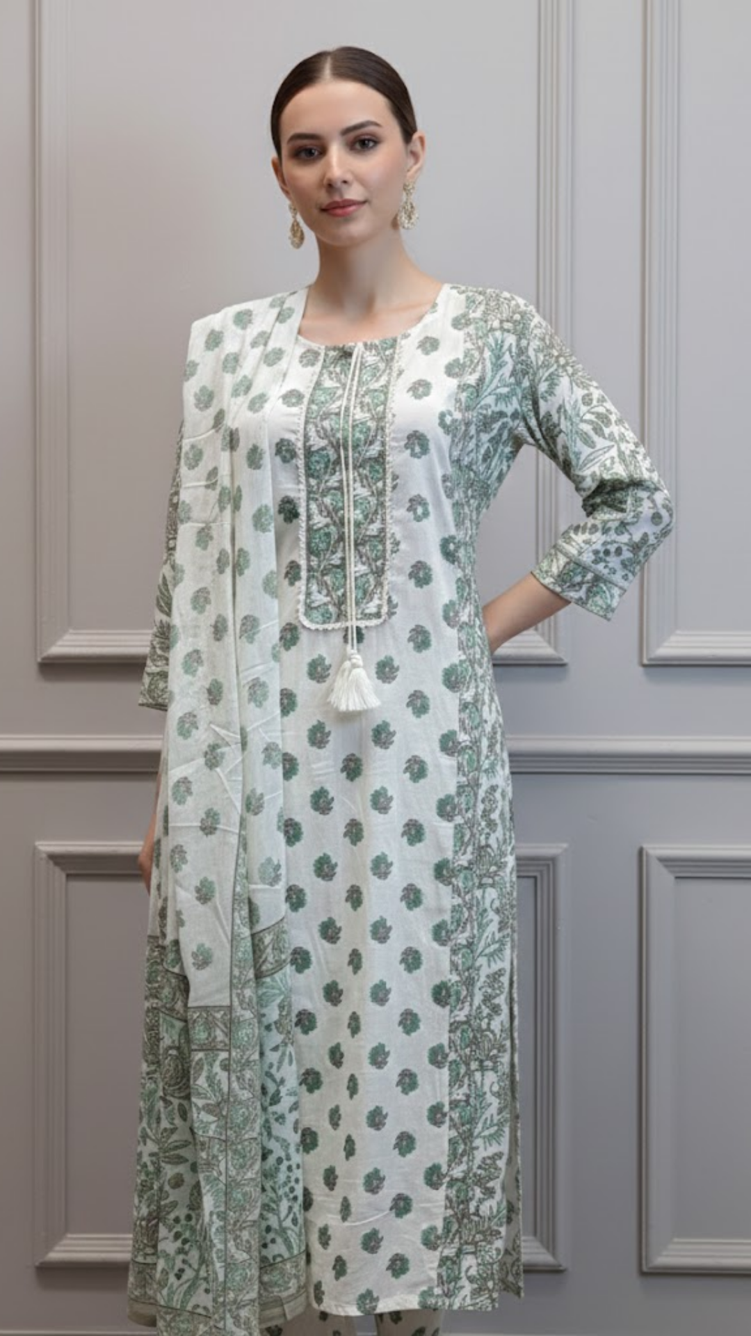 Green & White Jaipur Cotton Punjabi Suit – Crafted in Comfort, Rooted in Culture Breathe easy and look effortlessly graceful...
