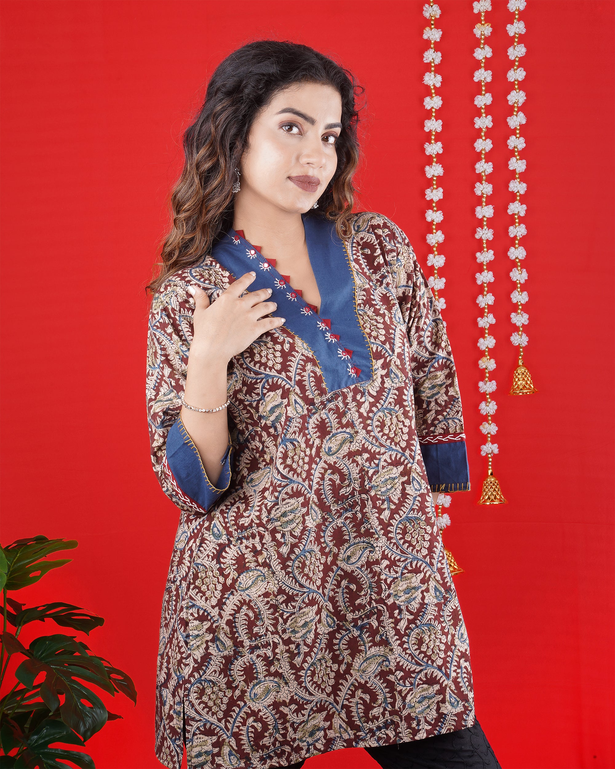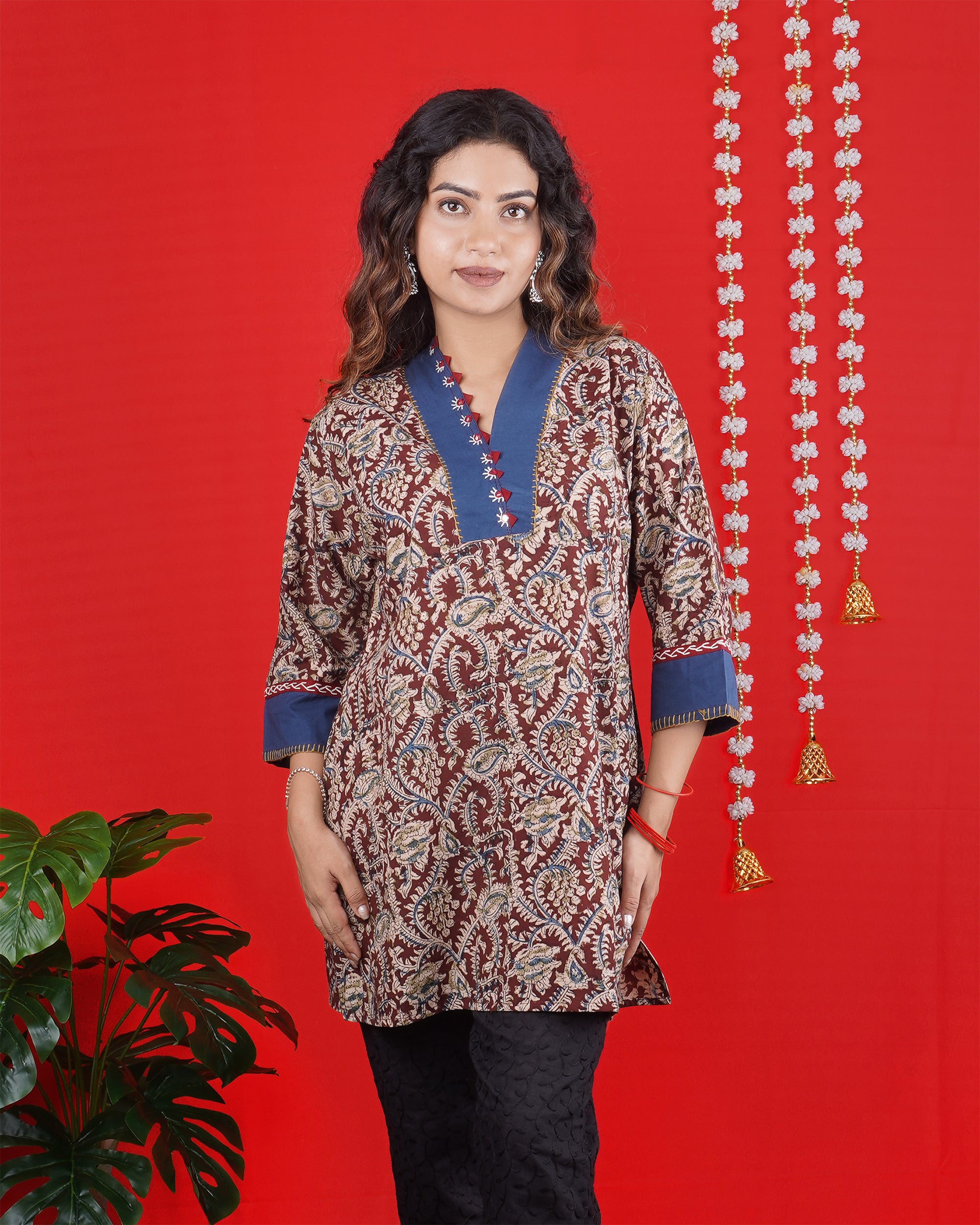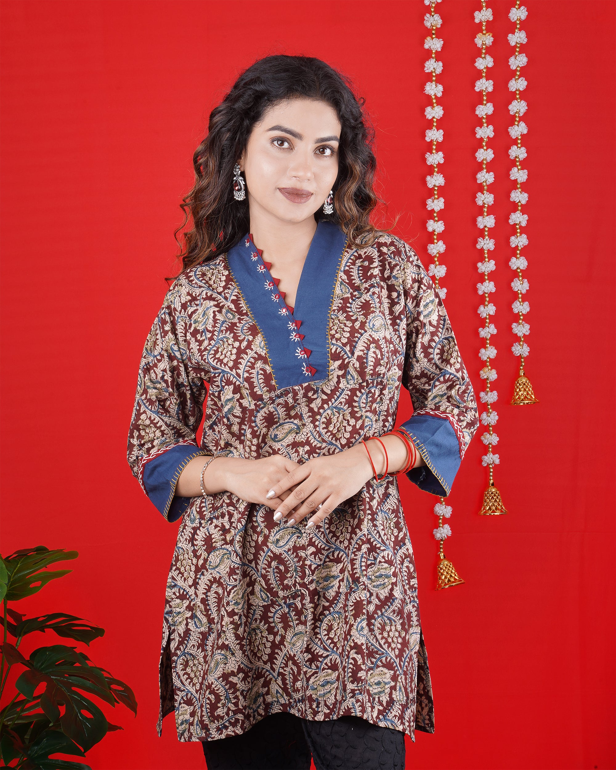 Crafted to bring out effortless grace, this maroon short top blends comfort with chic style. Made from soft, breathable cotton,...