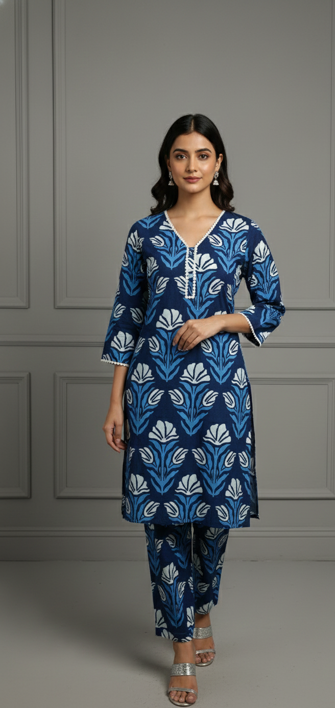 Indigo Grace Printed Cotton Kurta Set
