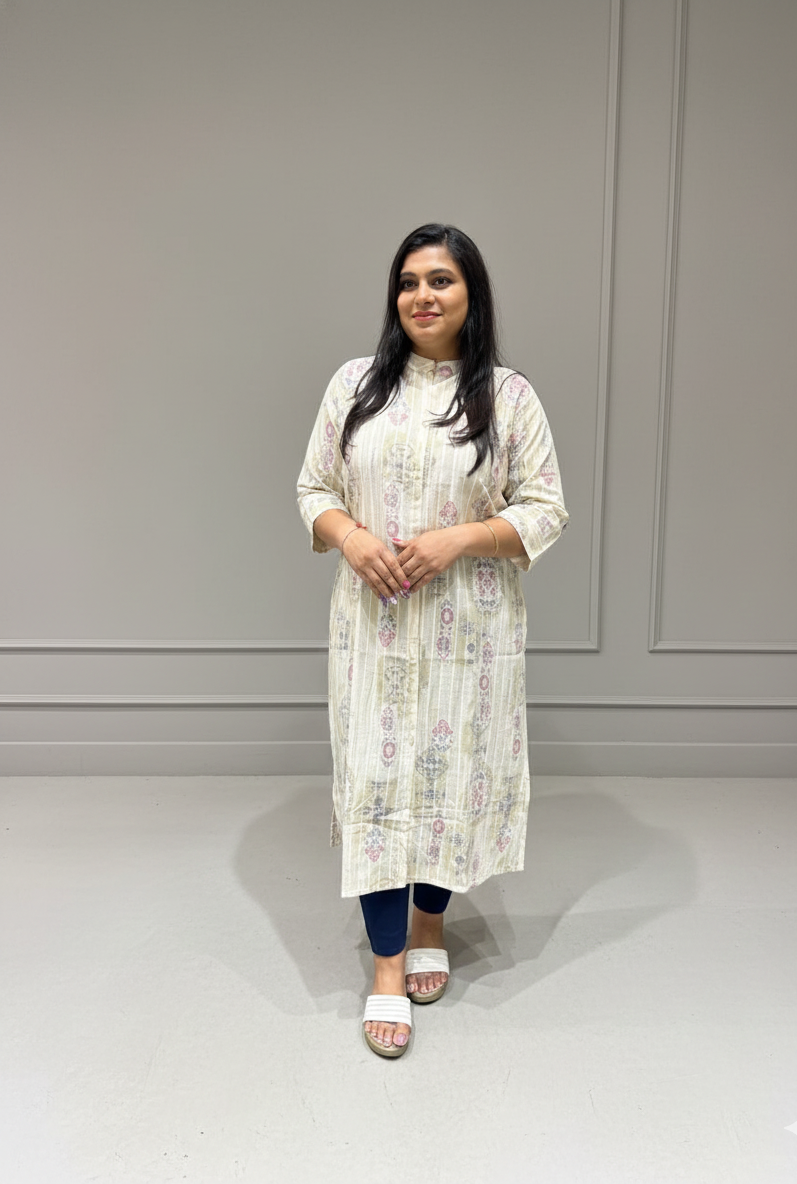 Ivory Base Printed Cotton Kurti with Pastel Florals – Soft & Stylish