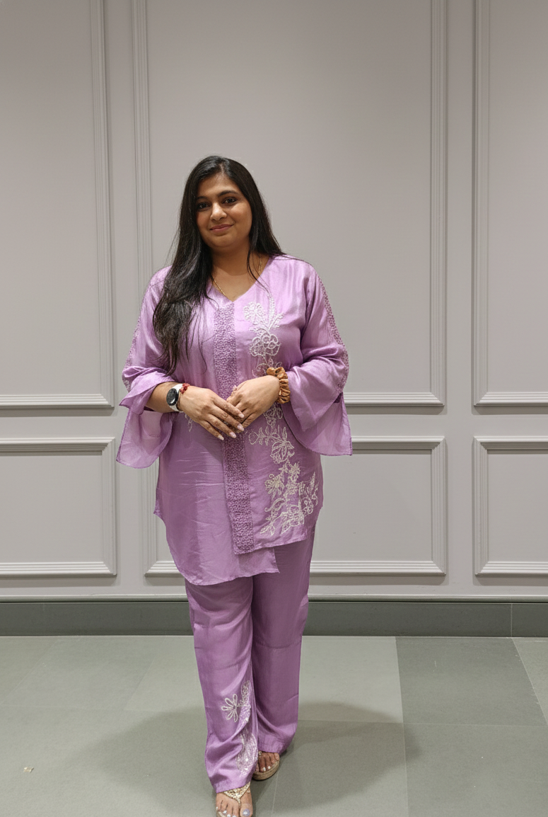 Lilac Radiance Pearl Co-ord Set – Where Comfort Meets Effortless Elegance Step into soft glam with our Lilac Radiance Pearl...