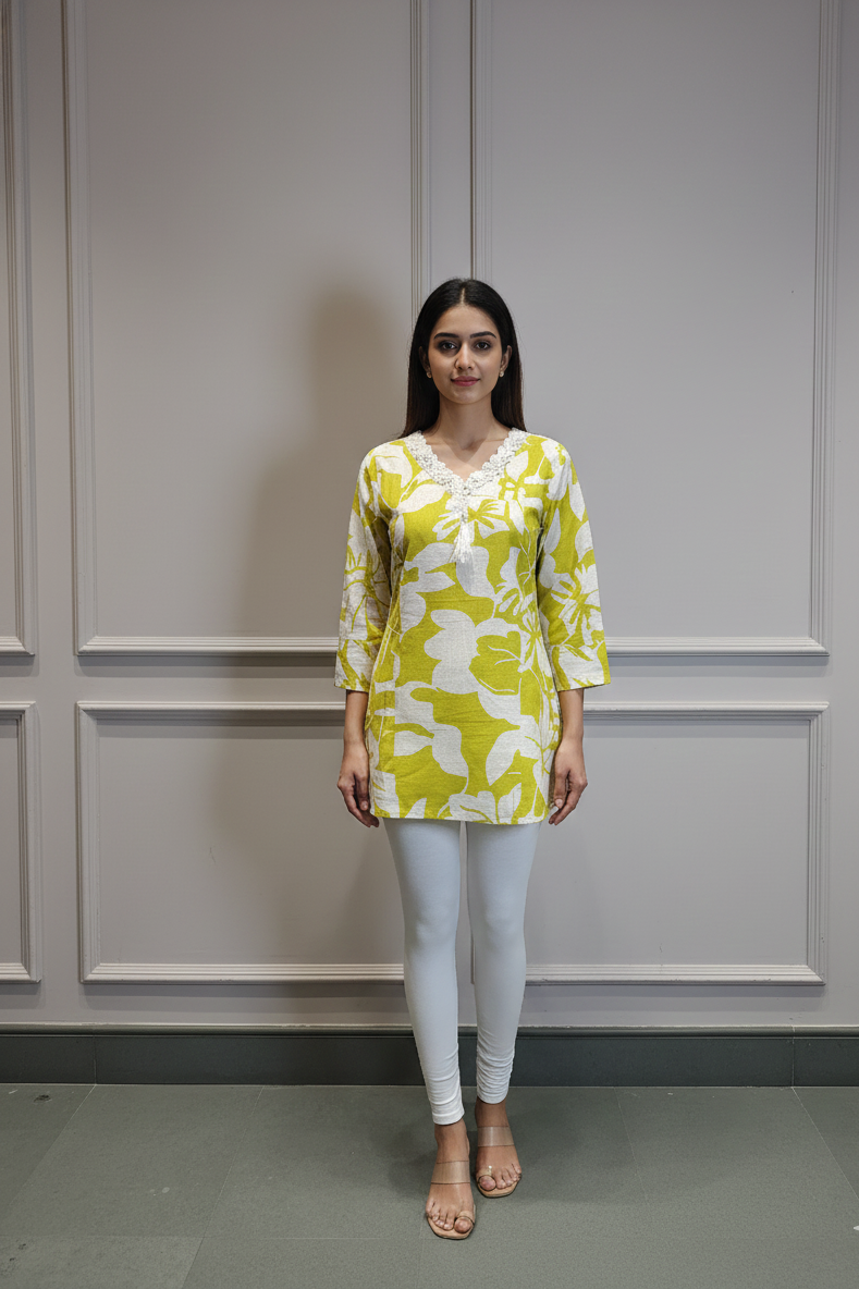 Lime Blossom Lace Tunic Short Top – Zesty Freshness Meets Feminine Flair Light as a breeze and bright as a...