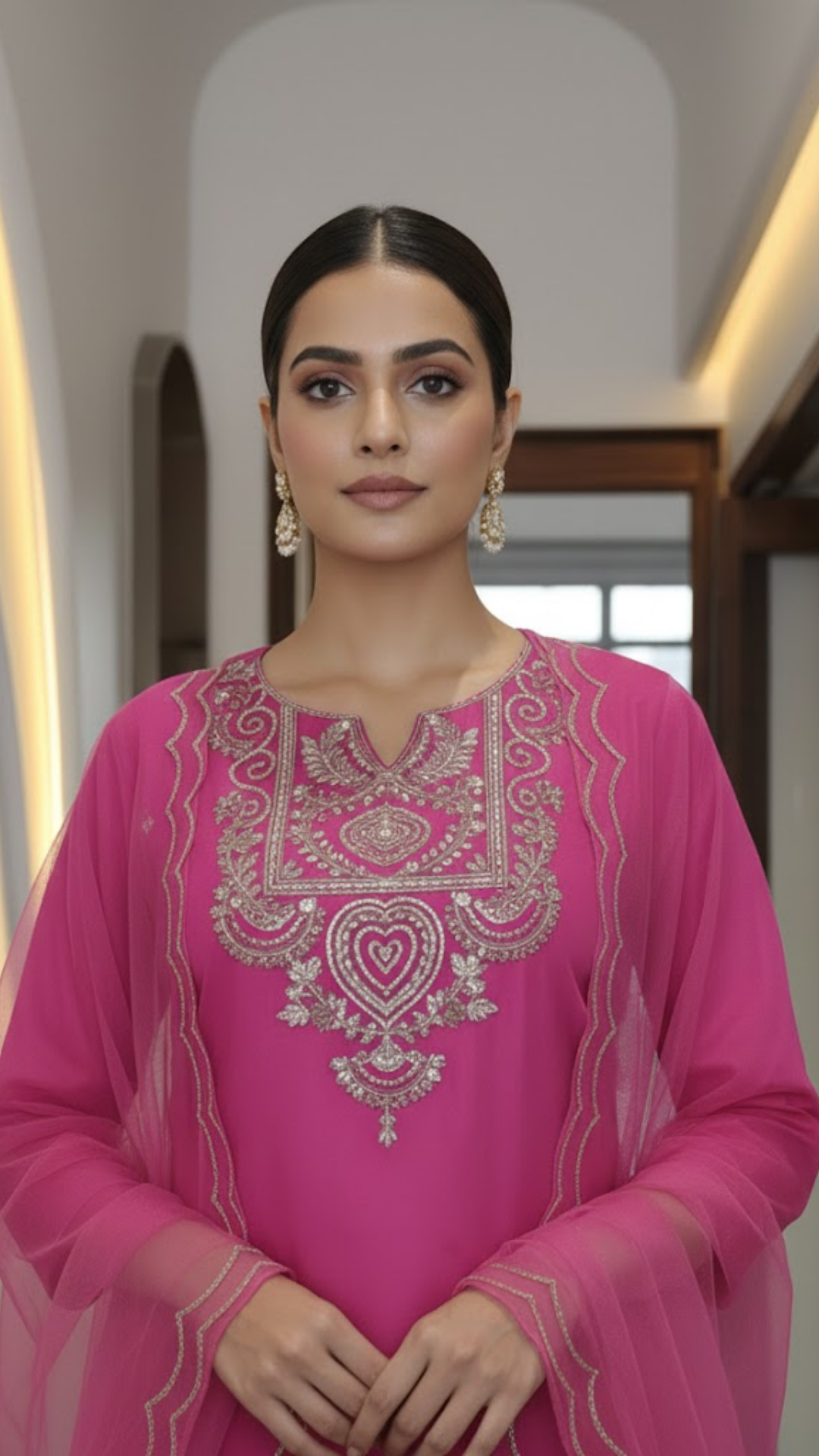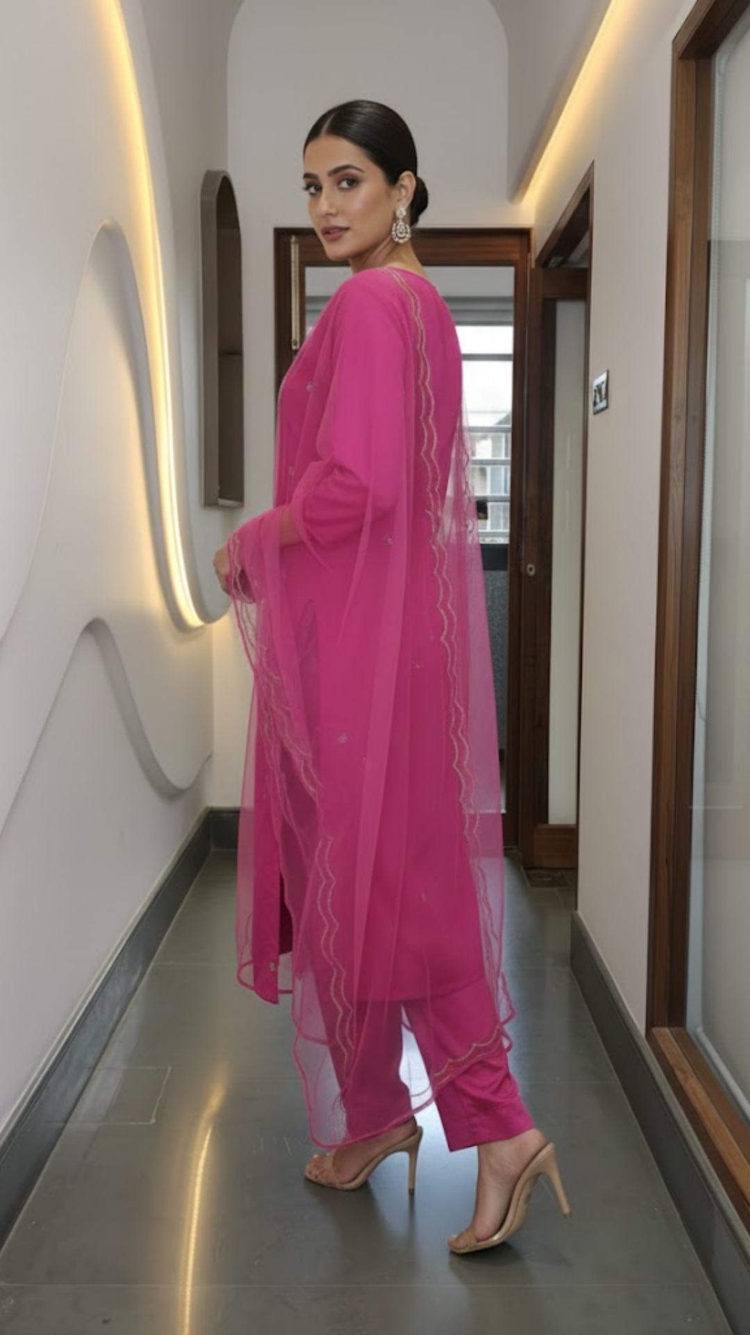 Magenta Mirror Work Suit Set with Net Dupatta (3-Piece Festive Edit)