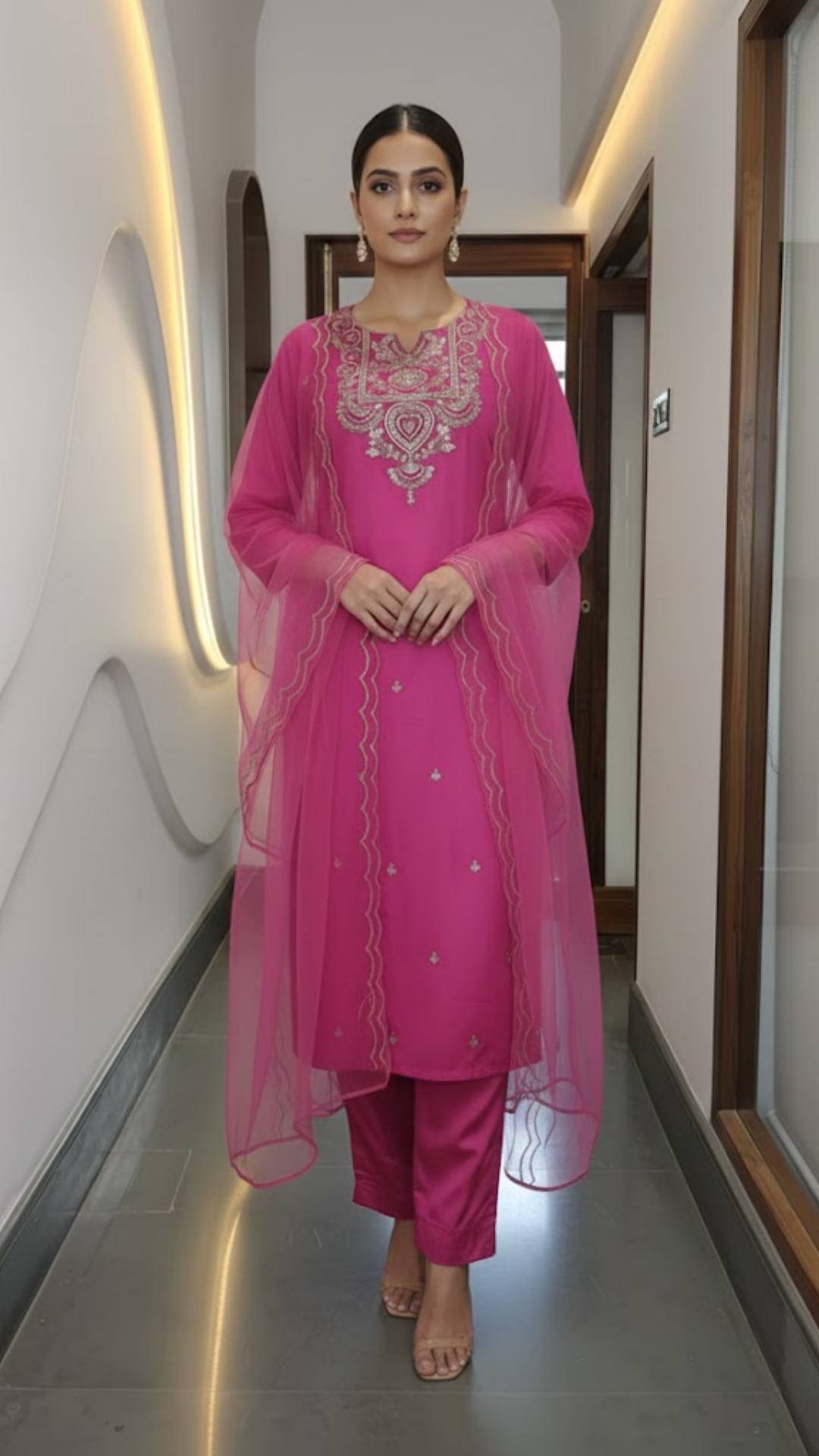 Turn heads with this stunning Magenta Mirror Work Suit Set, designed to make you feel effortlessly festive and fabulous. The...