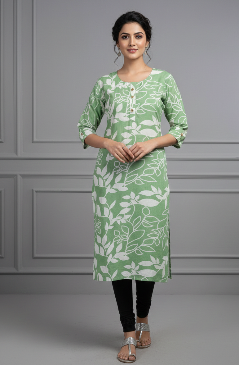 Mint Green Floral Printed Cotton Kurti – Fresh & Breezy Everyday Wear
