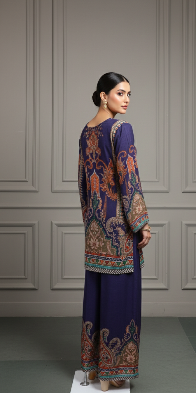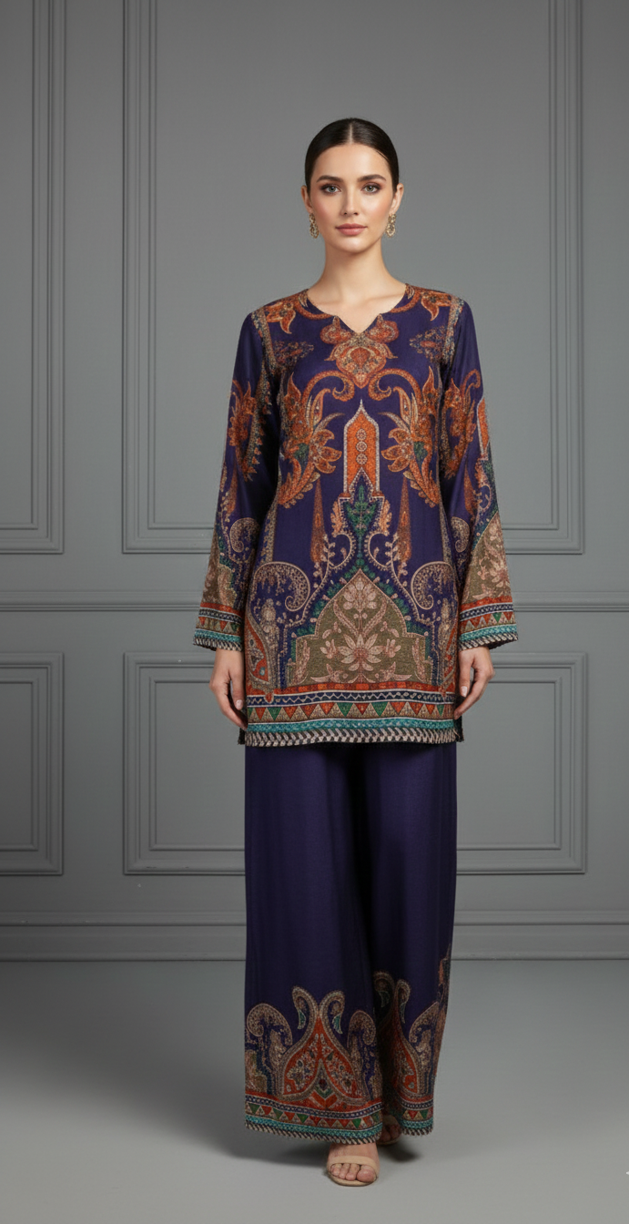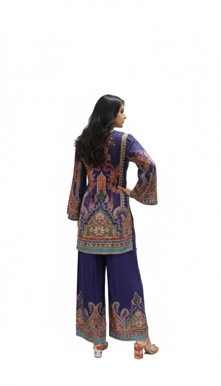 Make a bold yet elegant style statement with this Navy Blue Digital Print Co-Ord Set, designed for women who love...