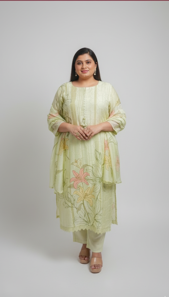 Pastel Green Floral Embroidered Kurta Set with Dupatta