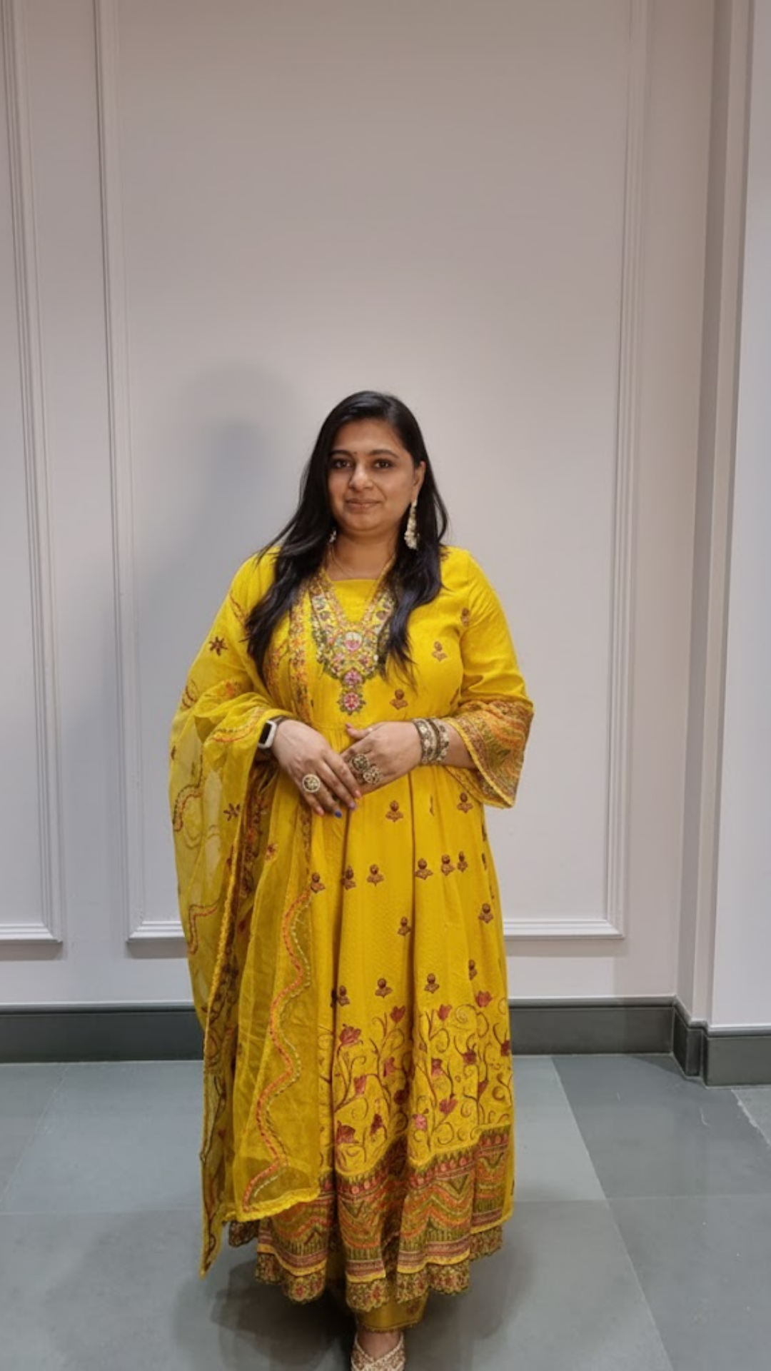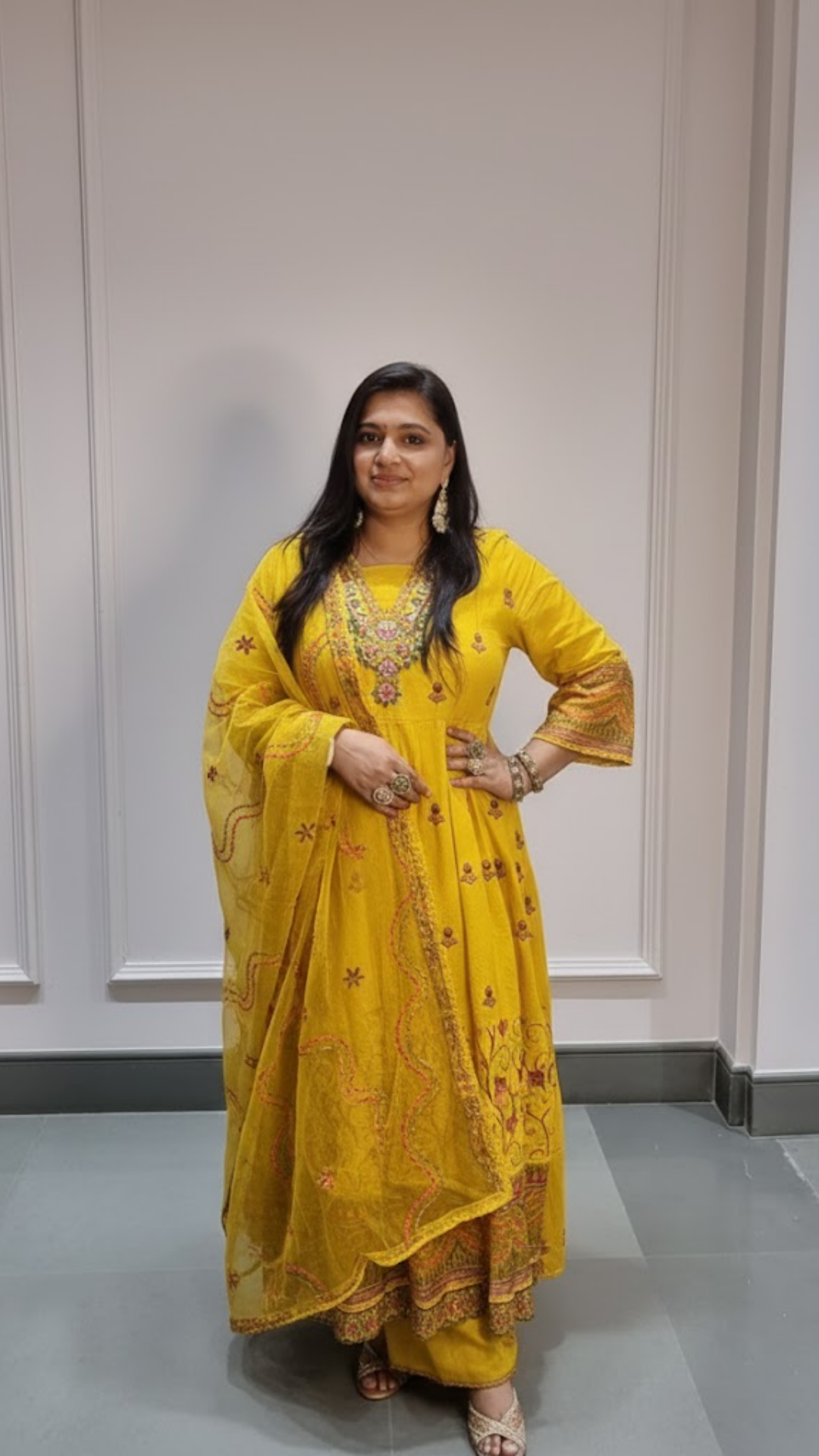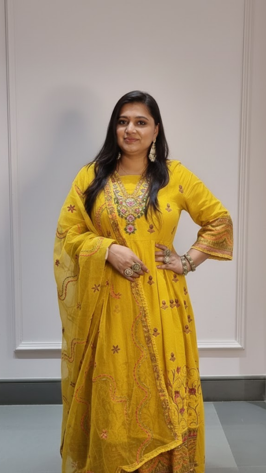 Add a burst of joy to your wardrobe with this radiant yellow Anarkali-style Punjabi suit — a perfect blend of...