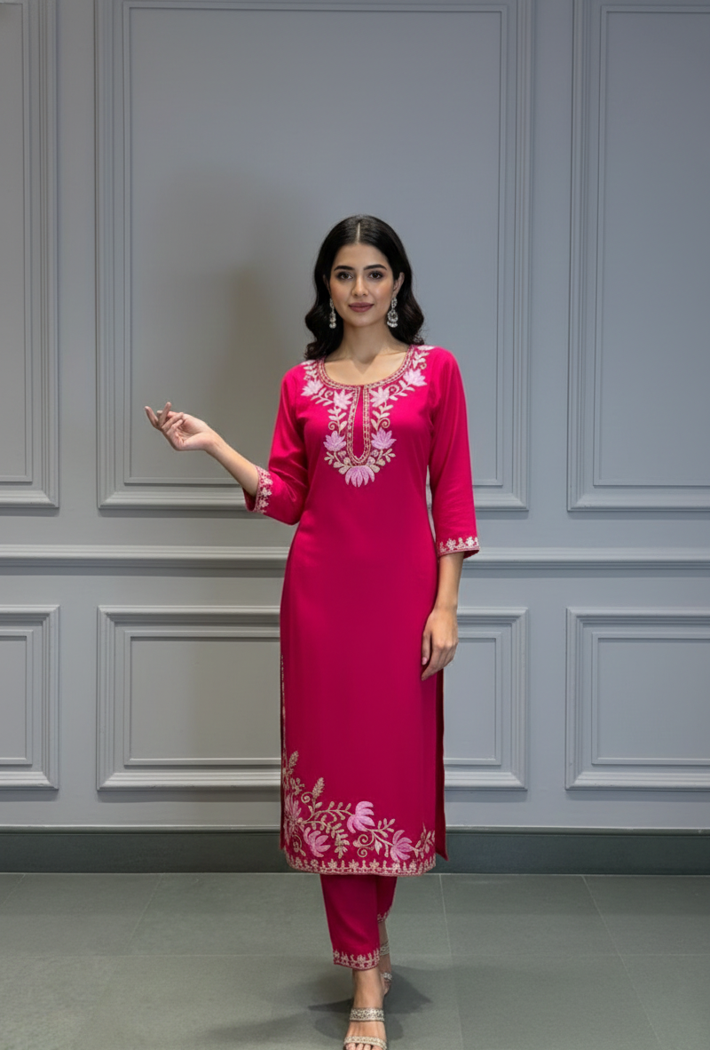 Royal Kashmiri Rani Kurta Set