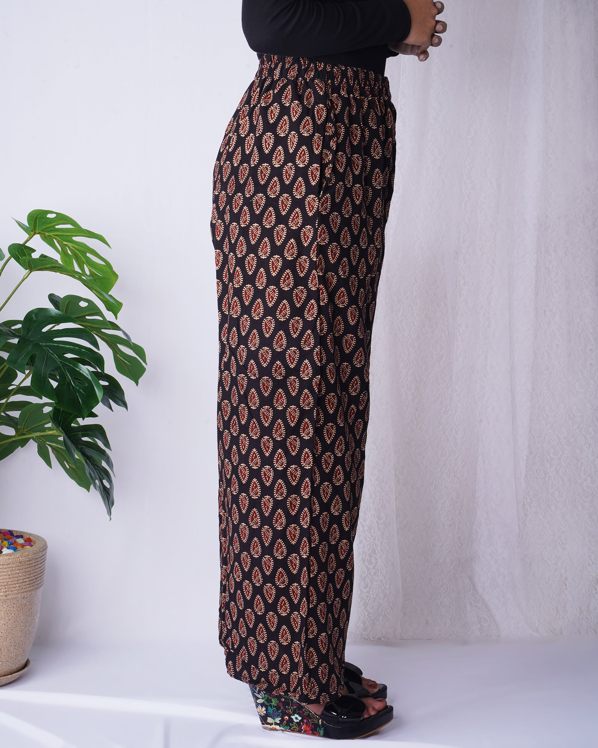 Black Leaf Print Palazzo Pants