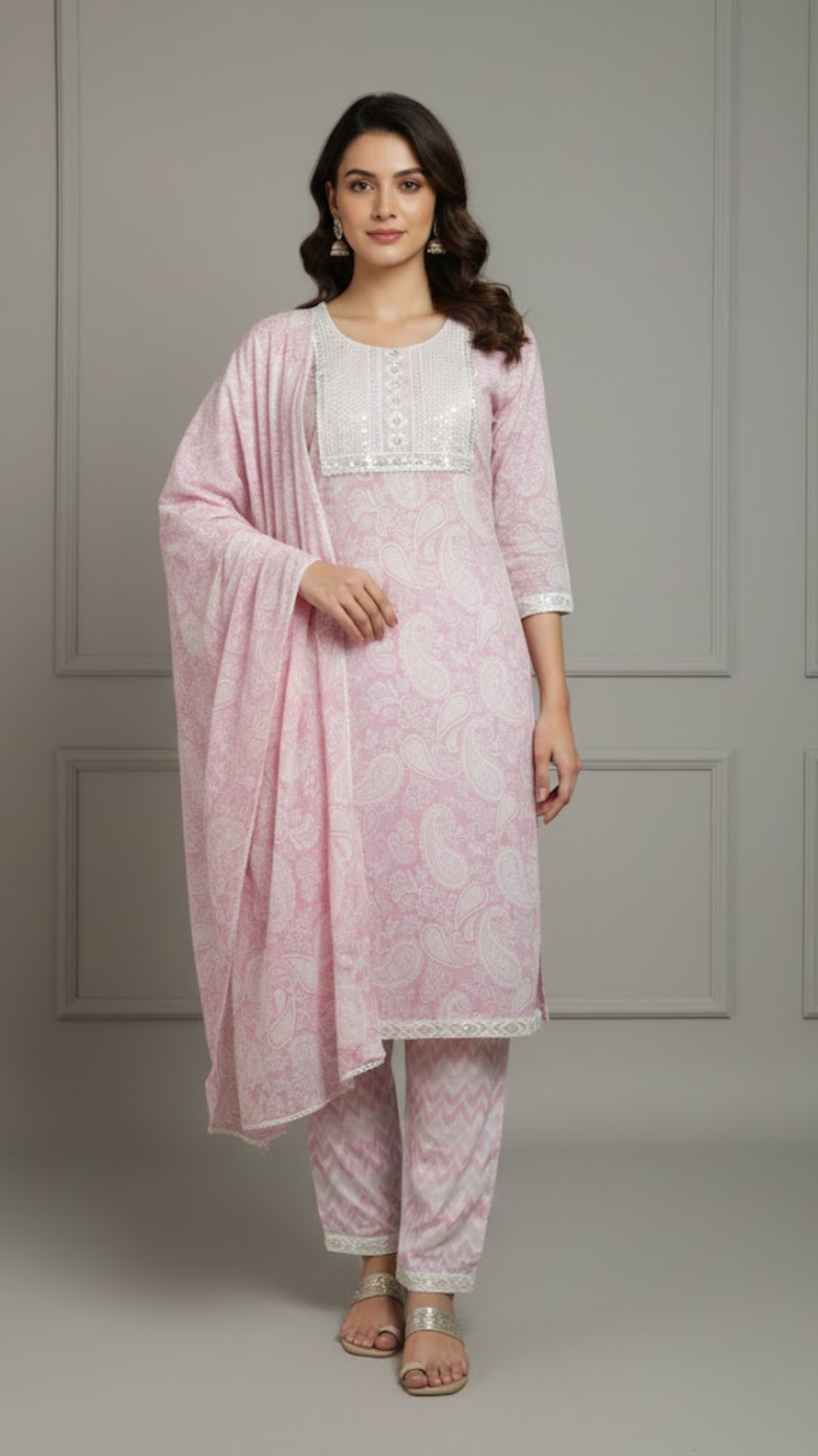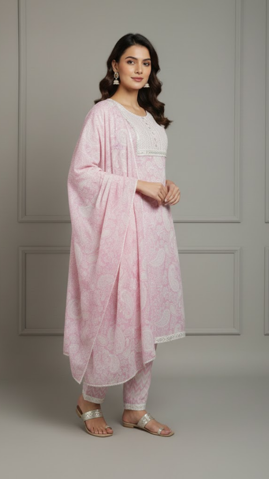 Step into effortless elegance with this beautiful Soft Rose Cotton Suit Set, crafted in a calming blush pink floral print...
