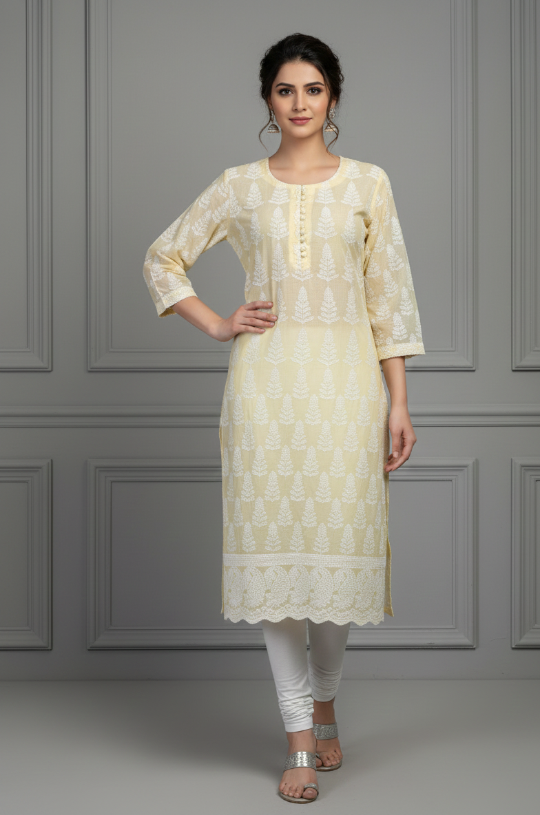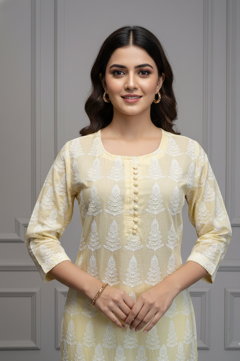 Sunkissed Grace Lemon Yellow Cotton Kurti – Light Up Your Day, Effortlessly Feel the warmth of sunshine and the freshness...